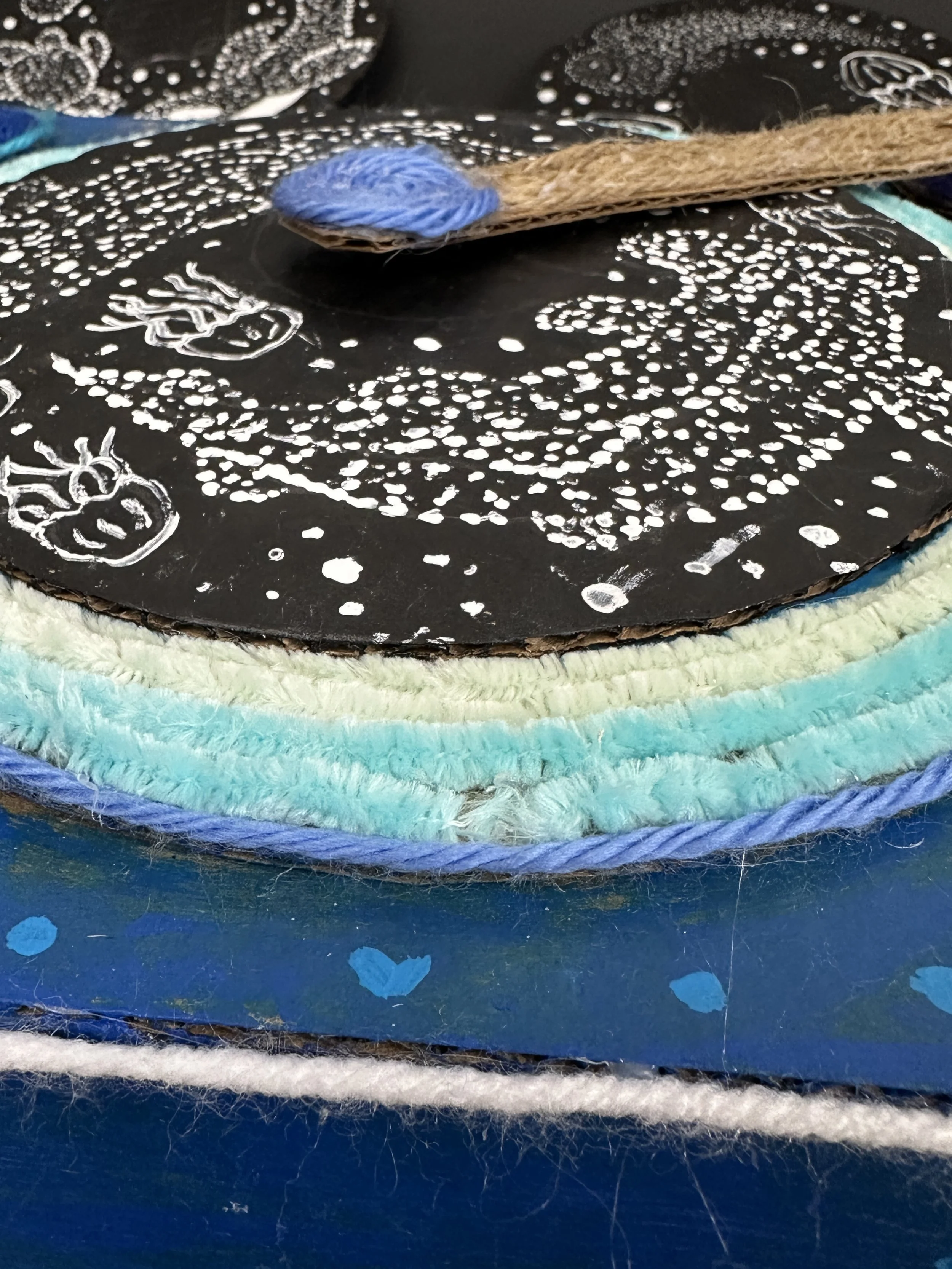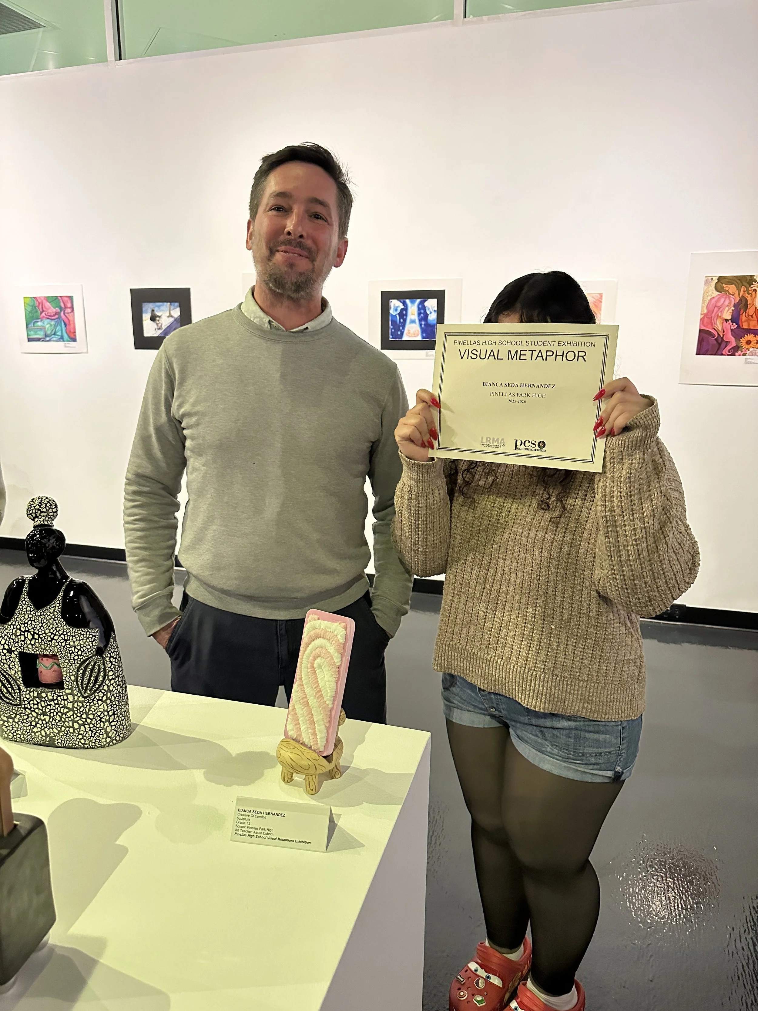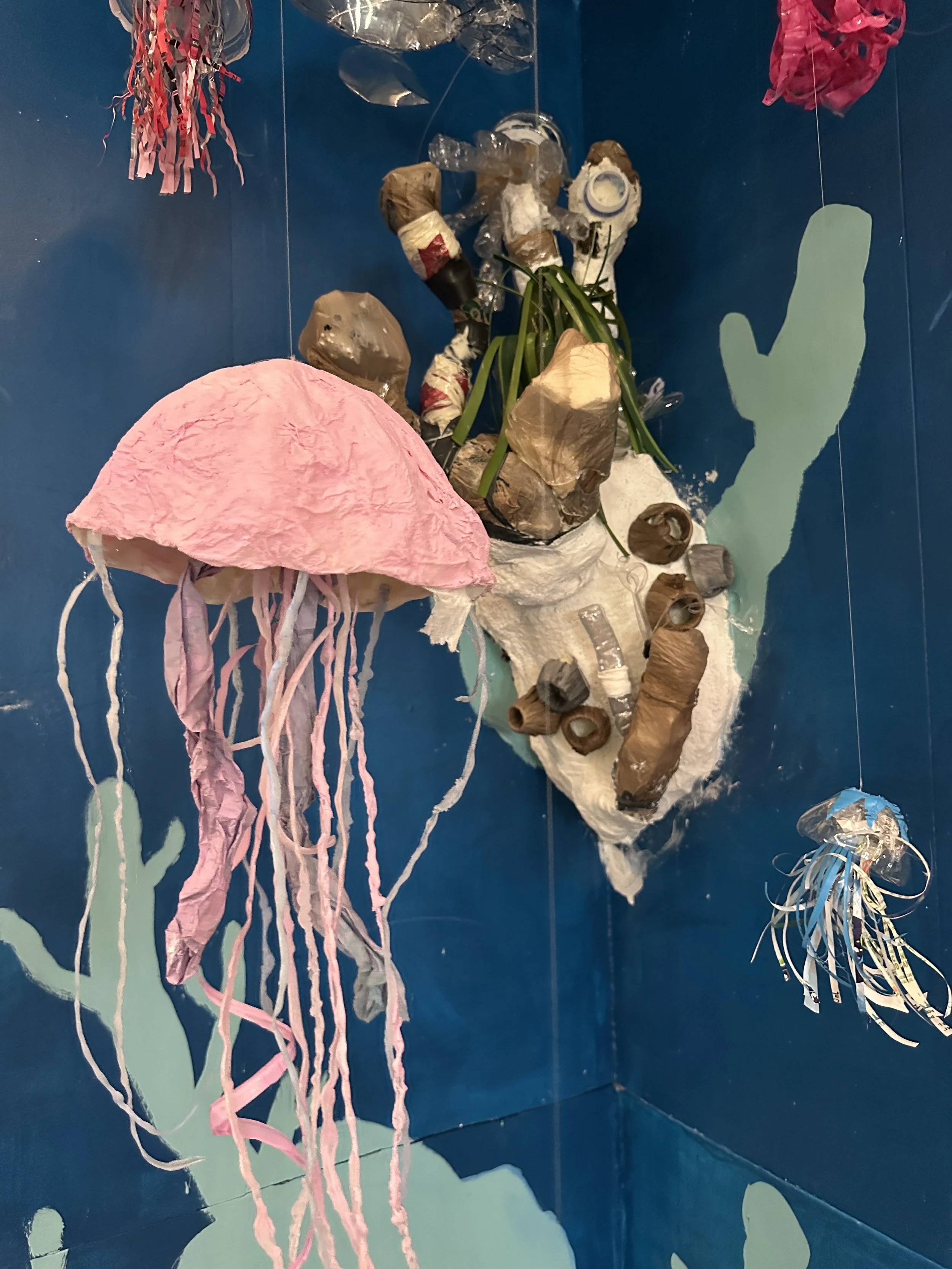 Our coral reef project began with a simple question: what can trash become? Working entirely with recycled materials — single-use plastic bags, discarded foam packaging, salvaged milk jugs — my students shaped coral formations and sea creatures from the very materials harming our oceans. The finished piece transformed a pile of waste into an underwater world, and in doing so, said something true about consumption, environmental impact, and what becomes possible when we choose to reuse rather than discard. The piece won Best in Show and Most Sustainable in Show at the Jane Goodall Art Gala at the University of Tampa.