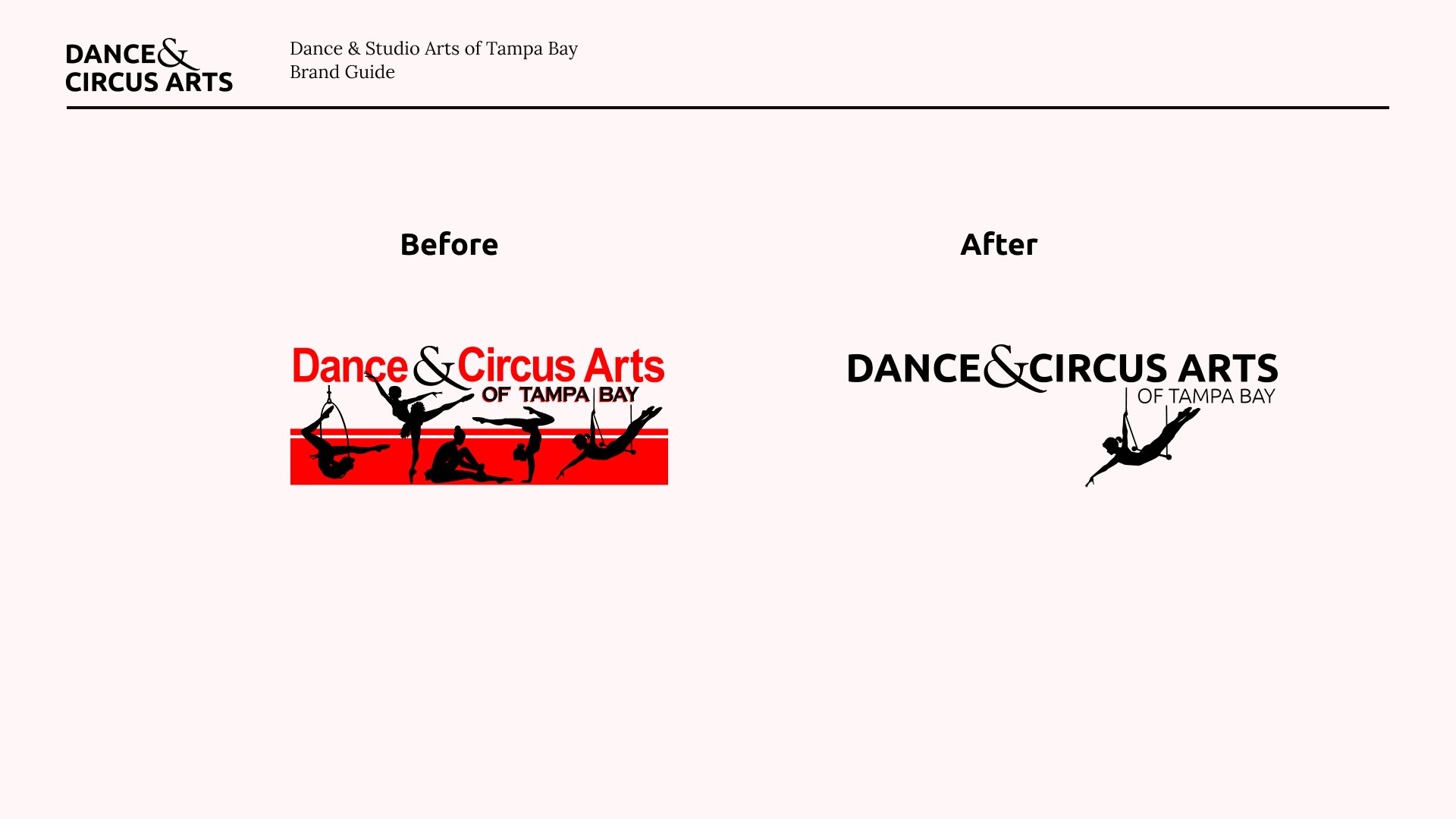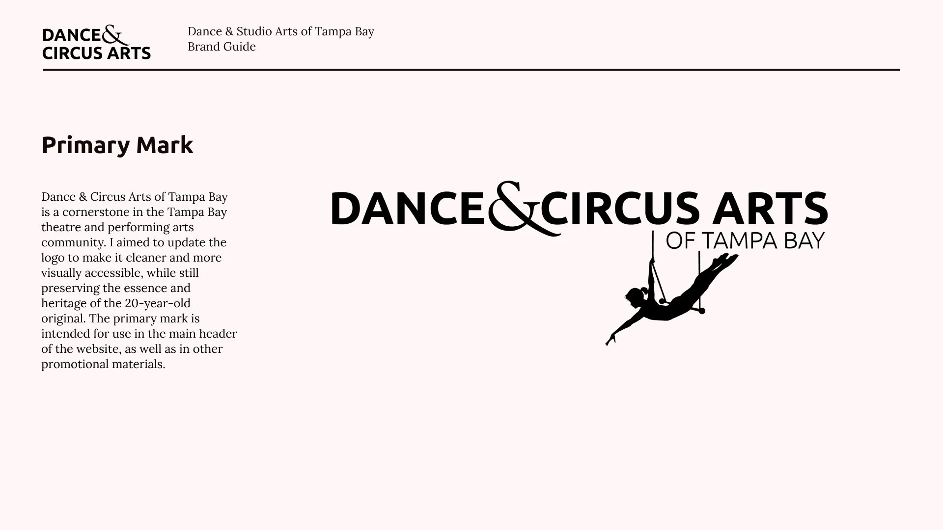 Dance & Circus Arts of Tampa Bay is a cornerstone in the Tampa Bay theatre and performing arts community. I aimed to update the logo to make it cleaner and more visually accessible, while still preserving the essence and heritage of the 20-year-old original