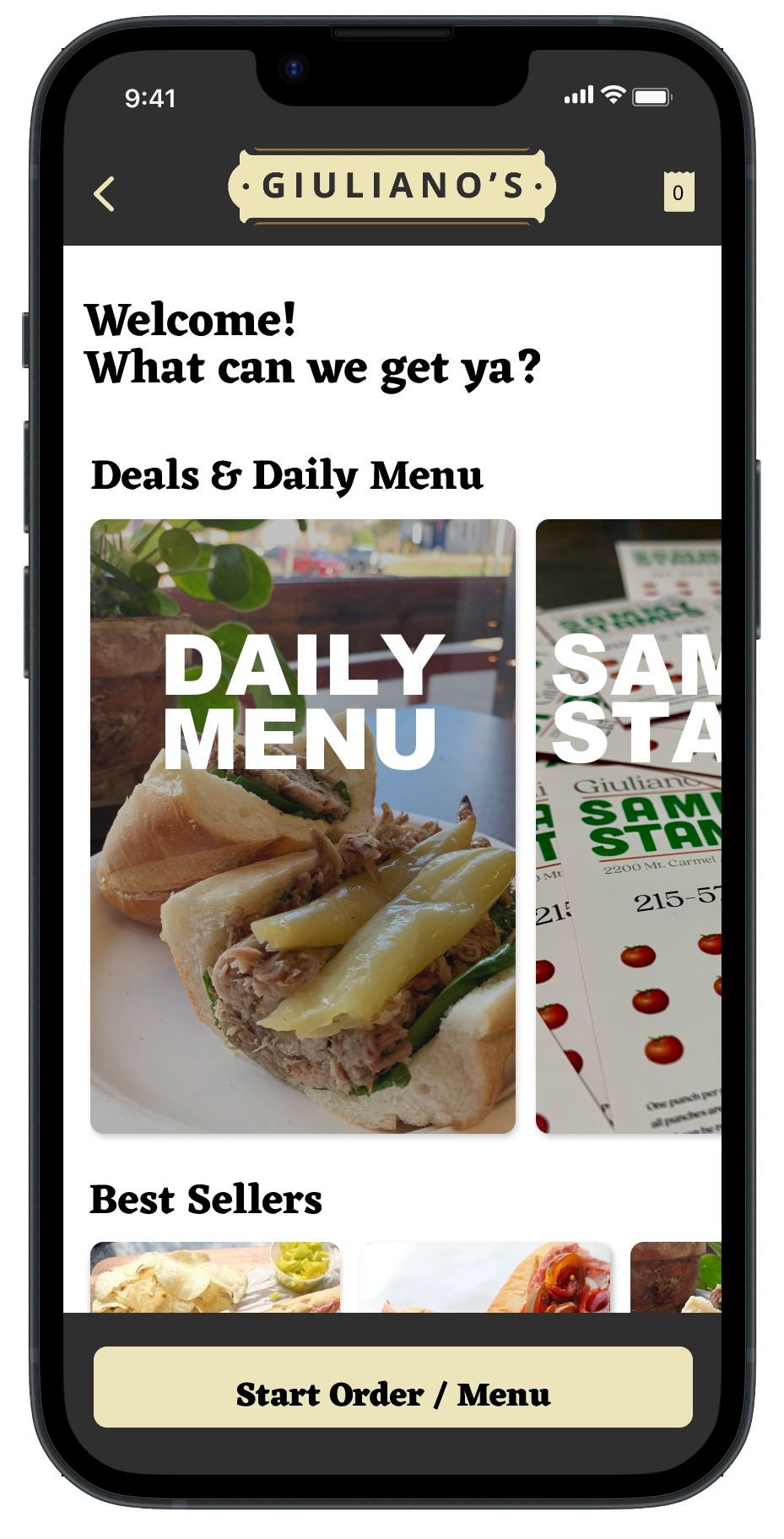 Giuliano's Deli Mobile App fills that gap by allowing customers to place orders directly with Giuliano's POS system while earning points and rewards that can be used within Glenside's Chamber of Commerce network.