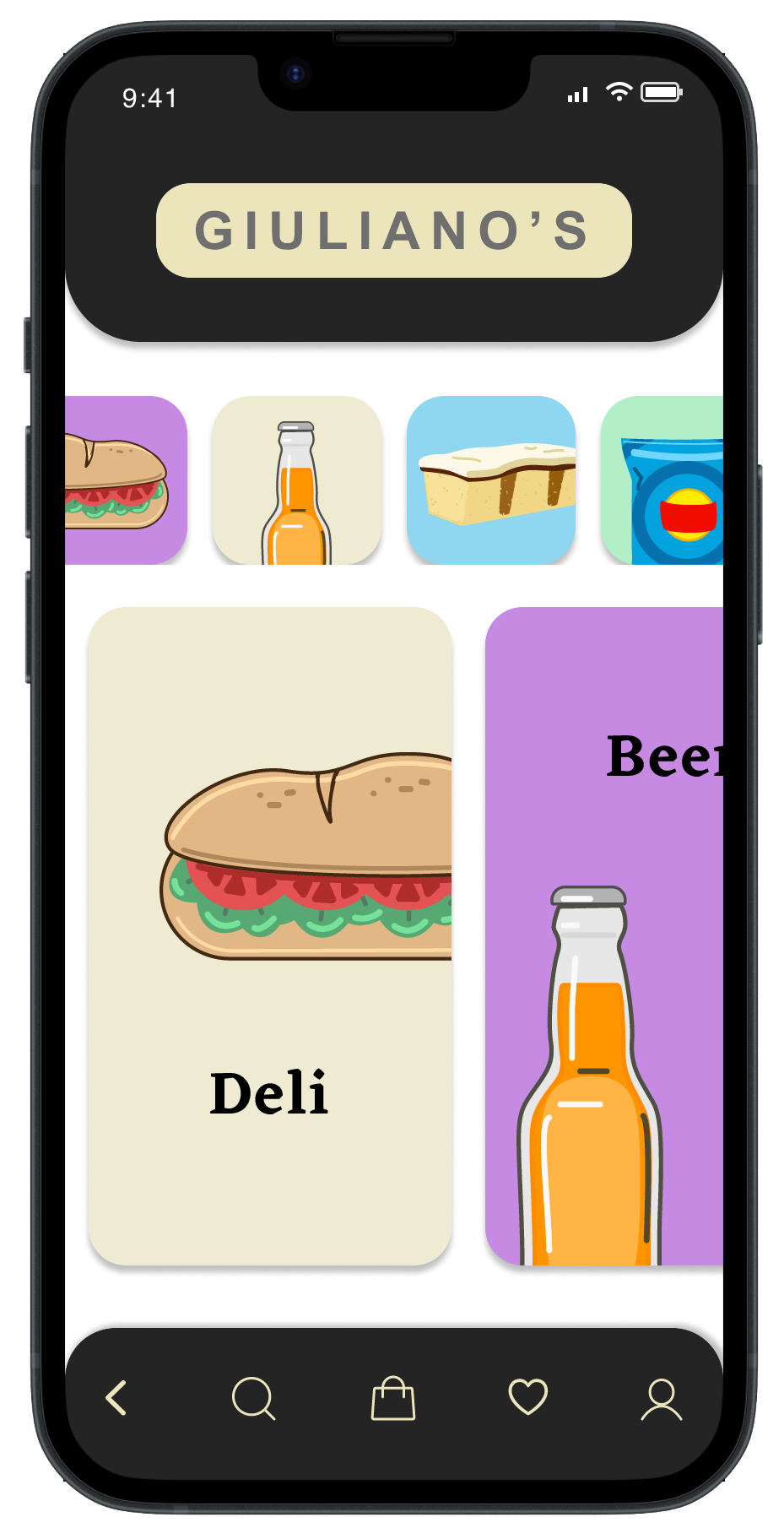 My design aligned with the existing aesthetic of the deli and its website. I believe this continuity made users familiar with the website feel at ease with the mobile app's brand. While I initially created various icons and illustrations, I found that incorporating photos from the deli's social media enriched the design. This approach effectively preserved the fresh feel of the deli within the app. Furthermore, the language chosen mirrors the local colloquial tone, adding a touch of playfulness and authenticity to capture the deli's essence.