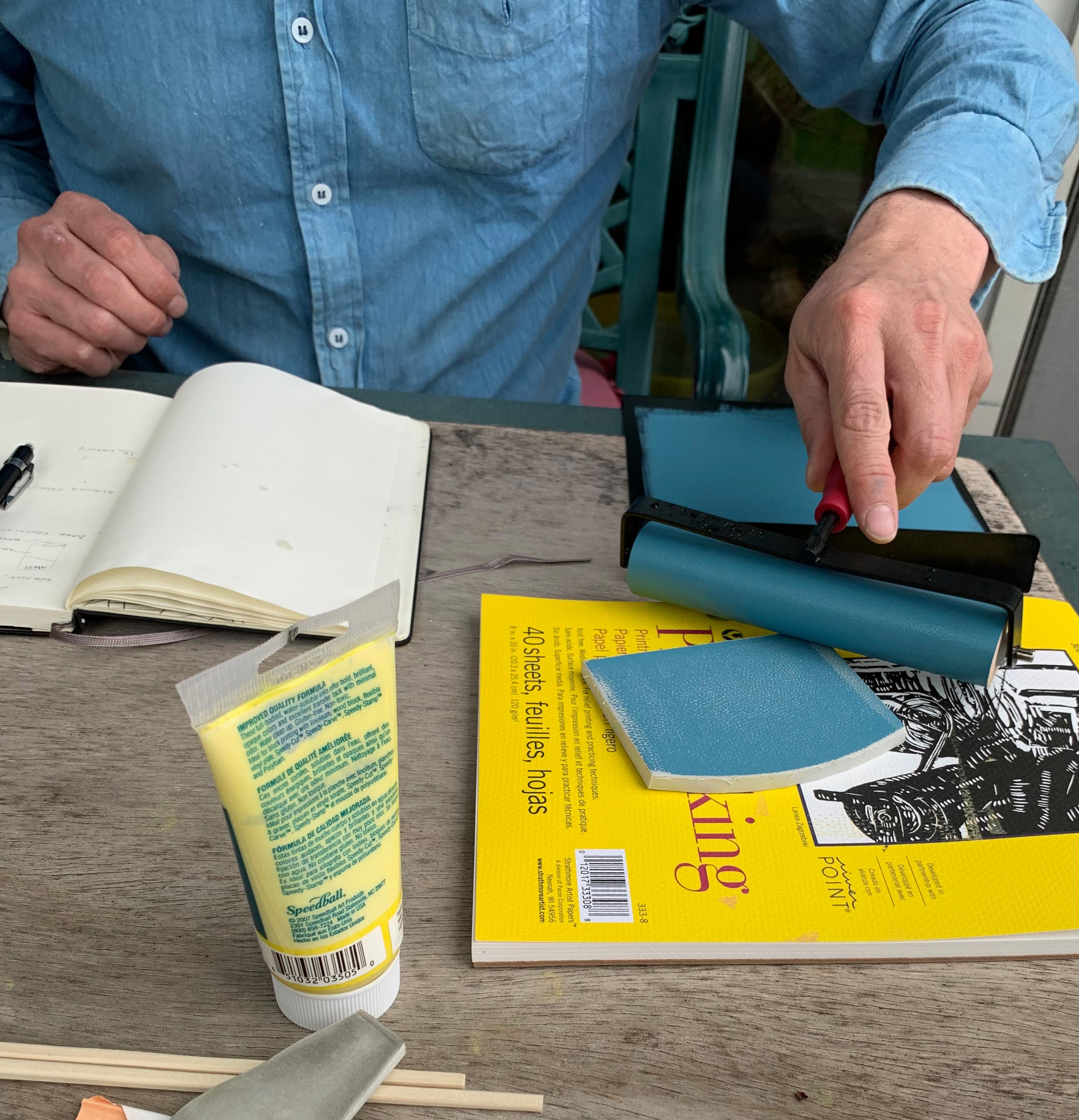 To develop the artwork for the package design, I explored various techniques. These included dip dyeing paper and fabric, mono printing, and lino cutting.