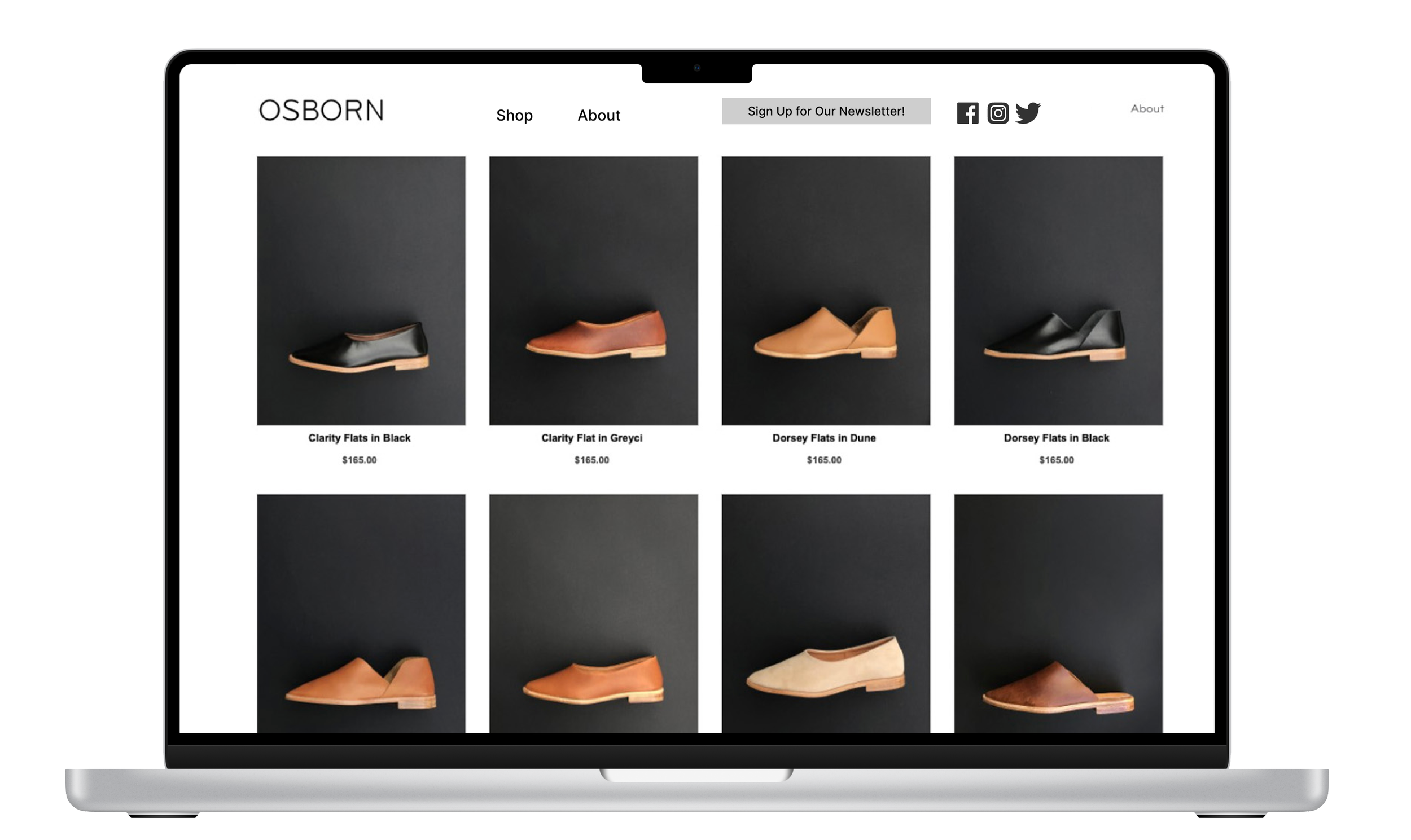 We also made our site’s navigation very simple, with clear CTA’s for shopping, signing up for our newsletter, and social media icons.